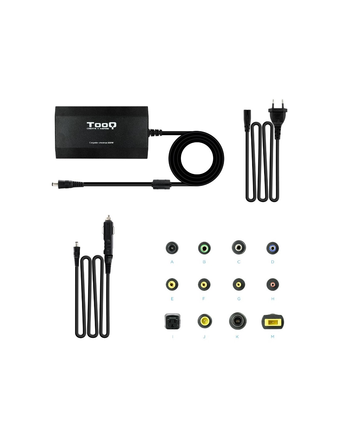 ALIMENTADOR PORT. 100W TOOQ 1 X USB 12 CONECTORES PN: TQLC-100BS01M EAN: 8433281006584