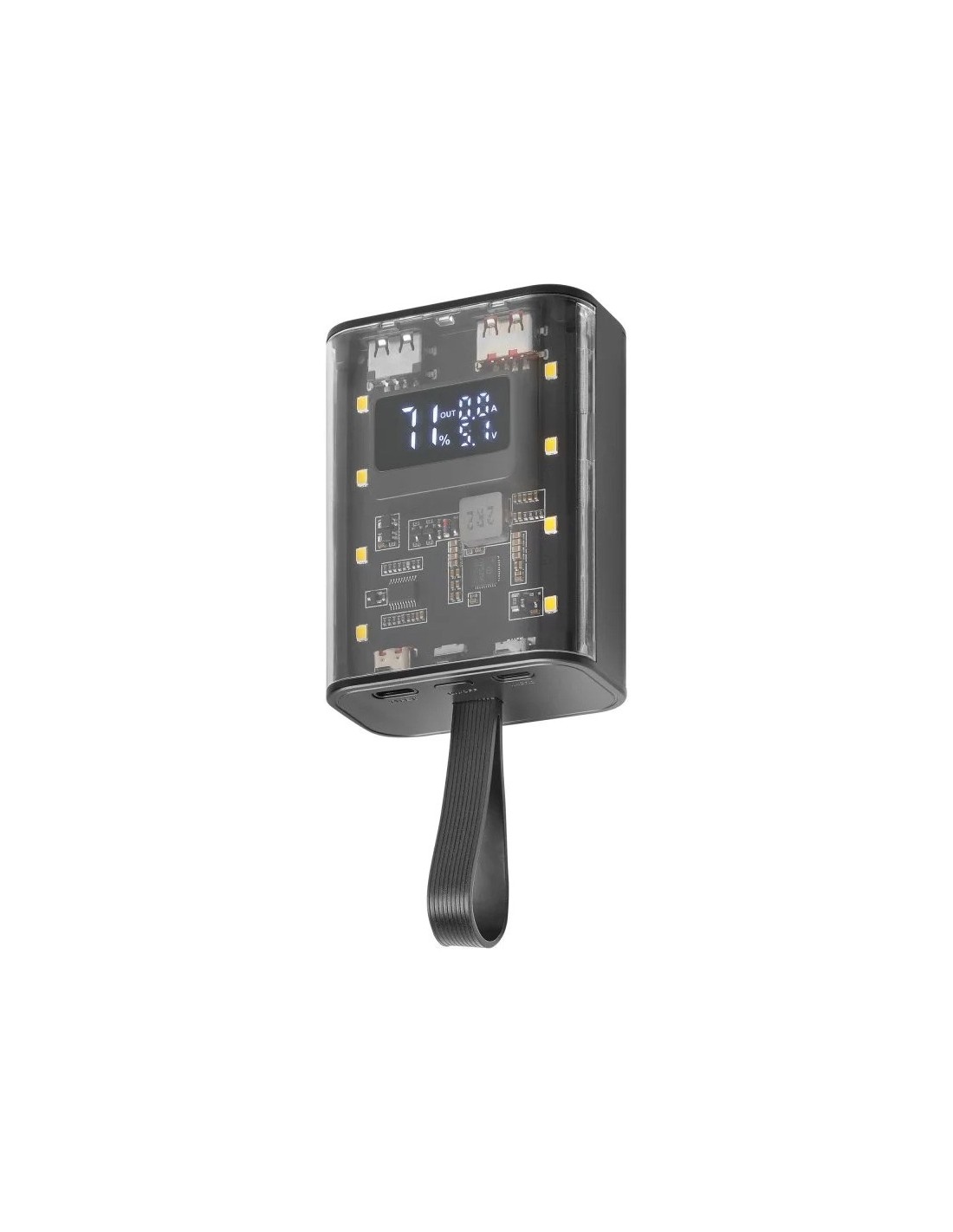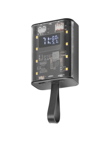 POWER BANK 10000MAH MPK-10K. La MPK-10K es una revolución en el diseño y funcionalidad de las baterías portátiles. Con su distintivo diseño transparente y tamaño compacto esta power bank de 10000mAh y 22.5W de potencia ofrece carga ultrarrápida con la tecnología QC3.0 & PD3.0. Incorporando una potente linterna LED y una correa para facilitar su transporte pantalla para monitorear el estado de la batería compatibilidad universal y capacidad para cargar hasta tres dispositivos simultáneamente la MPK-10K es ideal para aquellos en constante movimiento.