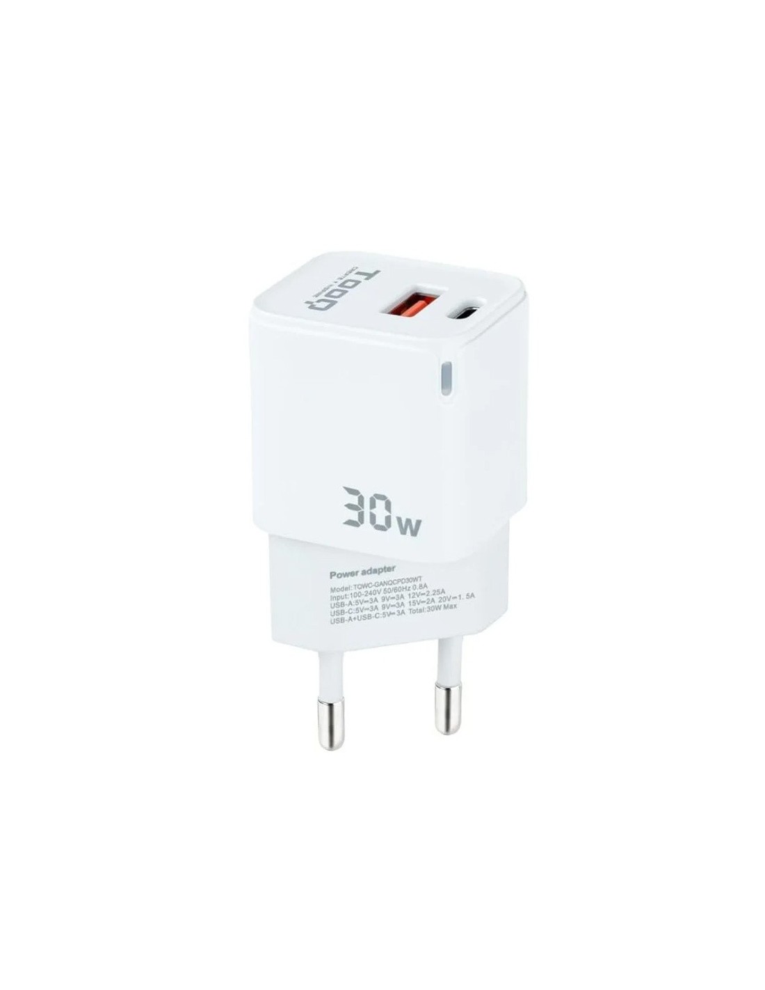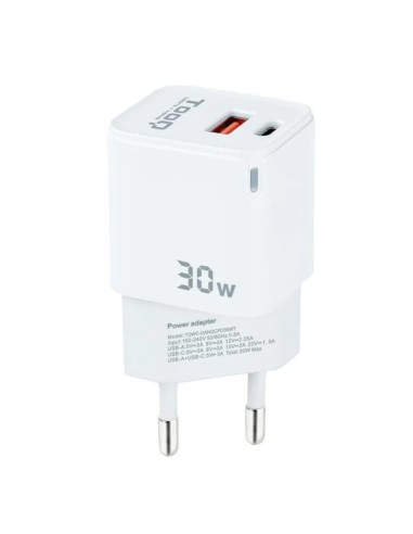 CARGADOR 5V ENCHUFE 2 X USB, TYPE C, USB, 30W BLANCO PN: TQWC-GANQCPD30WT EAN: 8433281012561