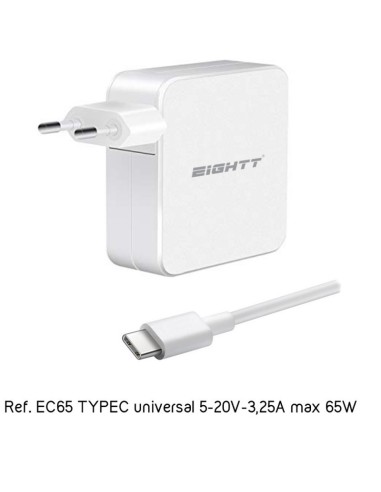 ALIMENTADOR PORT.  65W EIGHTT  ASUS, APPLE, ACER ... TYPE-C PN: EC65 EAN: 8425402170960
