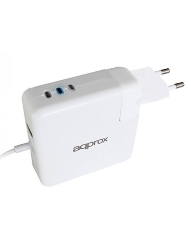 Es muy habitual que el cable del cargador de Apple se rompa y arreglarlo no es una tarea fácil. Por eso hemos diseñado cargadores de alta calidad y duraderos para que puedas cambiar tu cargador al mejor precio. El APPUAAPL o APPUAAPT son unos cargadores para portátiles Apple, la diferencia principal es el conector de salida, tipo L para el modelo APPUAAPL y tipo T (Magsafe 2) para el modelo APPUAAPT, con su botón de selección de potencia estos dos modelos abarcan prácticamente todos los modelos de portátiles Apple para ser cargados y proporciona una alimentación segura. Tiene sistemas de protección de sobre-carga, protección de temperatura y de cortocircuito. Incluye LED azul que indica la potencia seleccionada y conector Europeo. Dispone de un puerto USB de 5V/2.1A para la carga de sus dispositivos tales como smartphones y tablets.