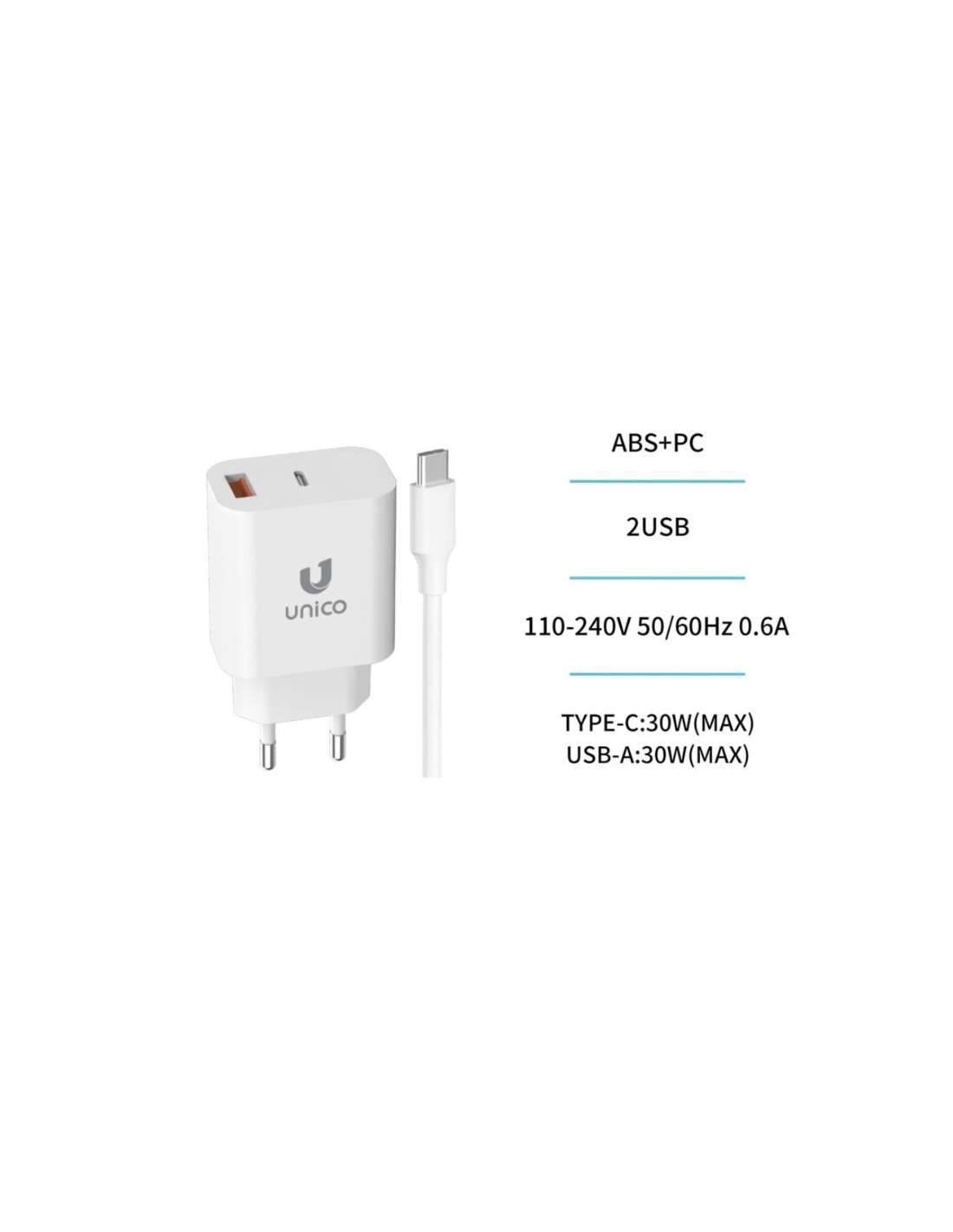 CARGADOR 5V ENCHUFE USB TYPE A, USB TYPE C 30W BLANCO PN: AAJCFB EAN: 8435719641749