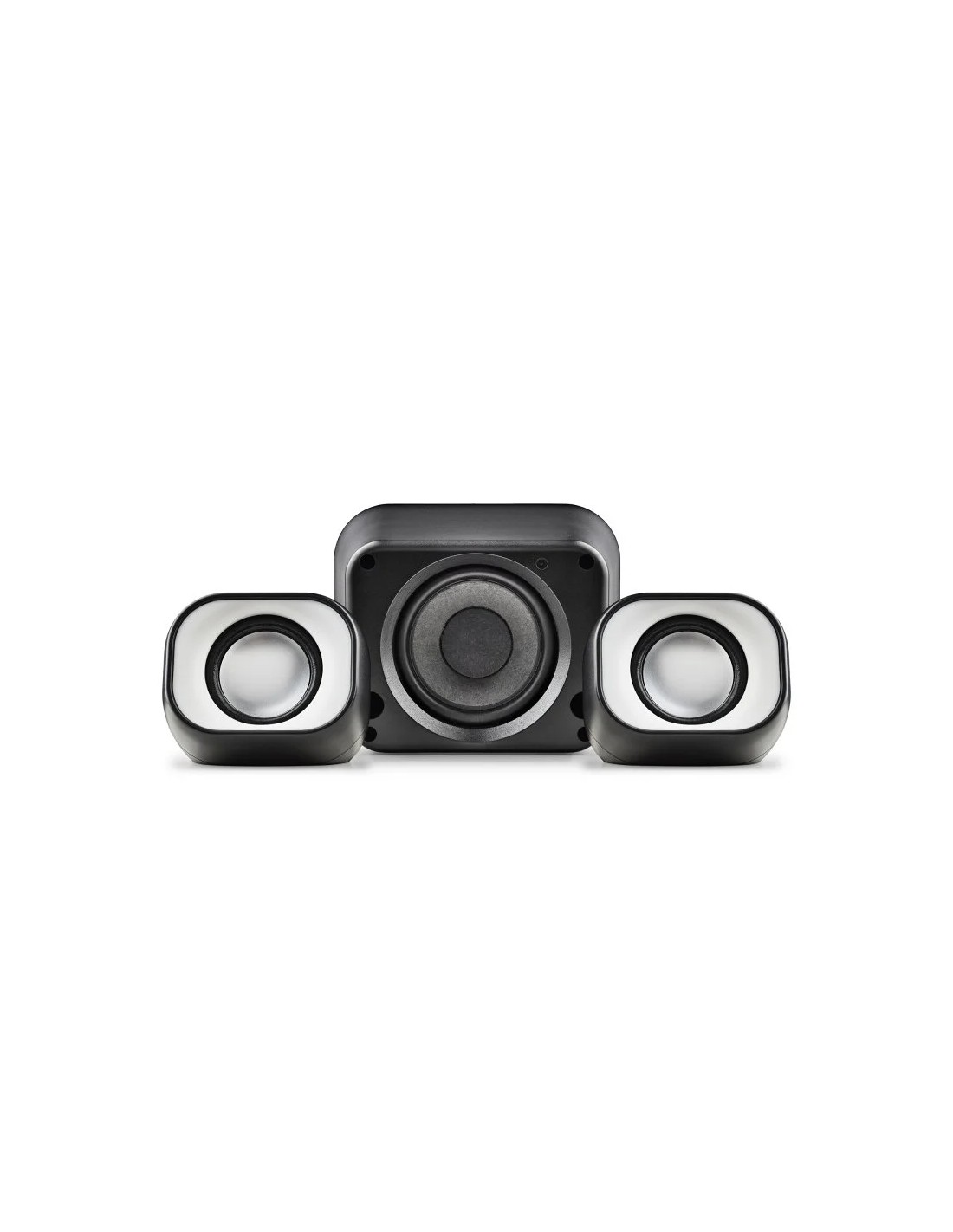 Sistema de sonido Multimedia estéreo 2.1 con máxima potencia de 20W.