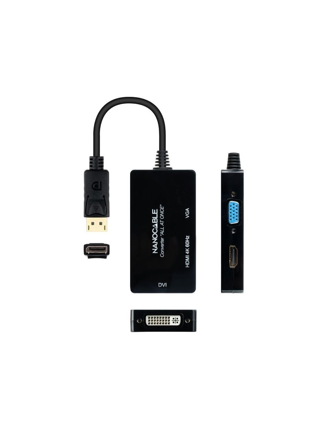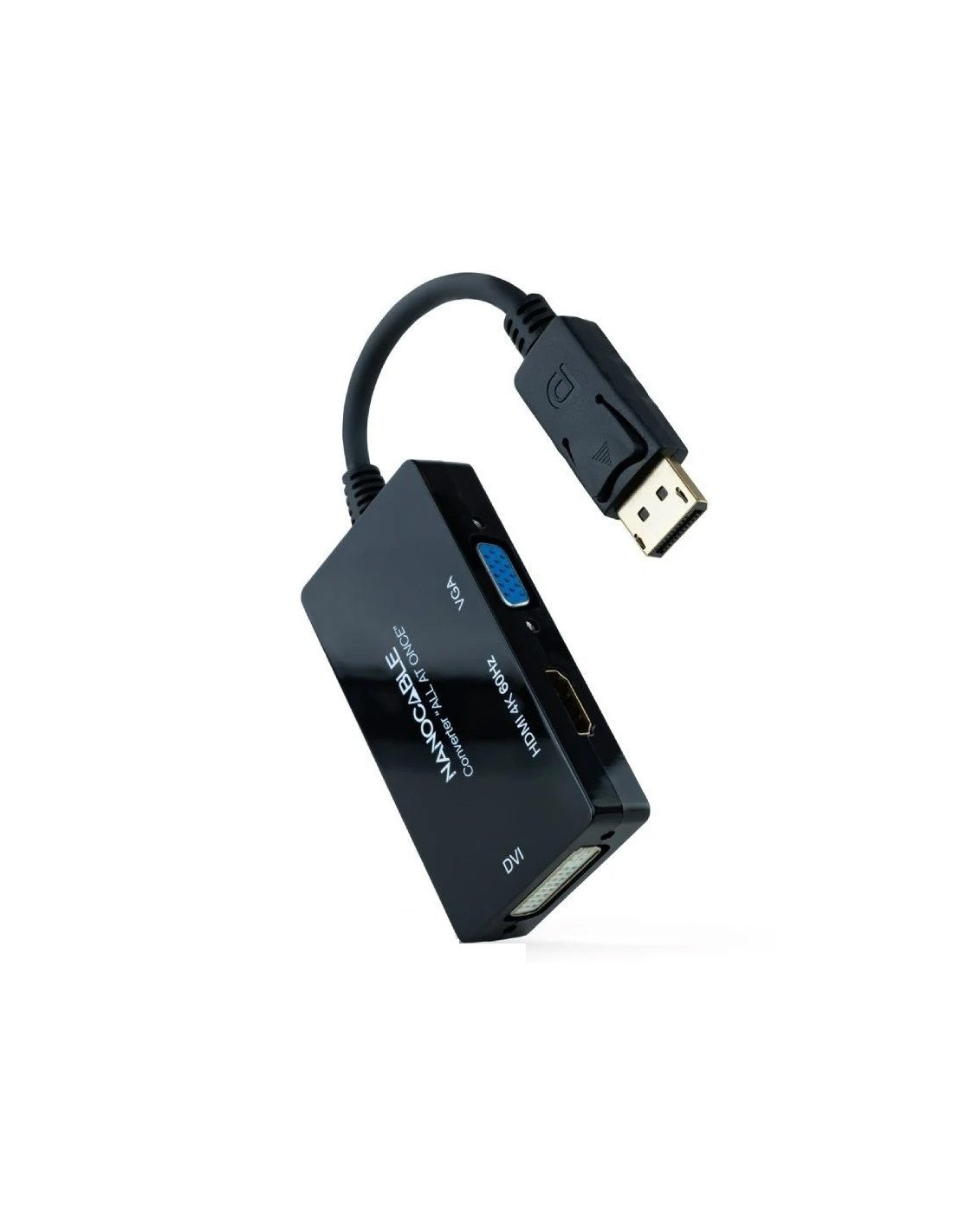 - Conversor DISPLAYPORT macho a HDMI hembra, DVI hembra y VGA hembra