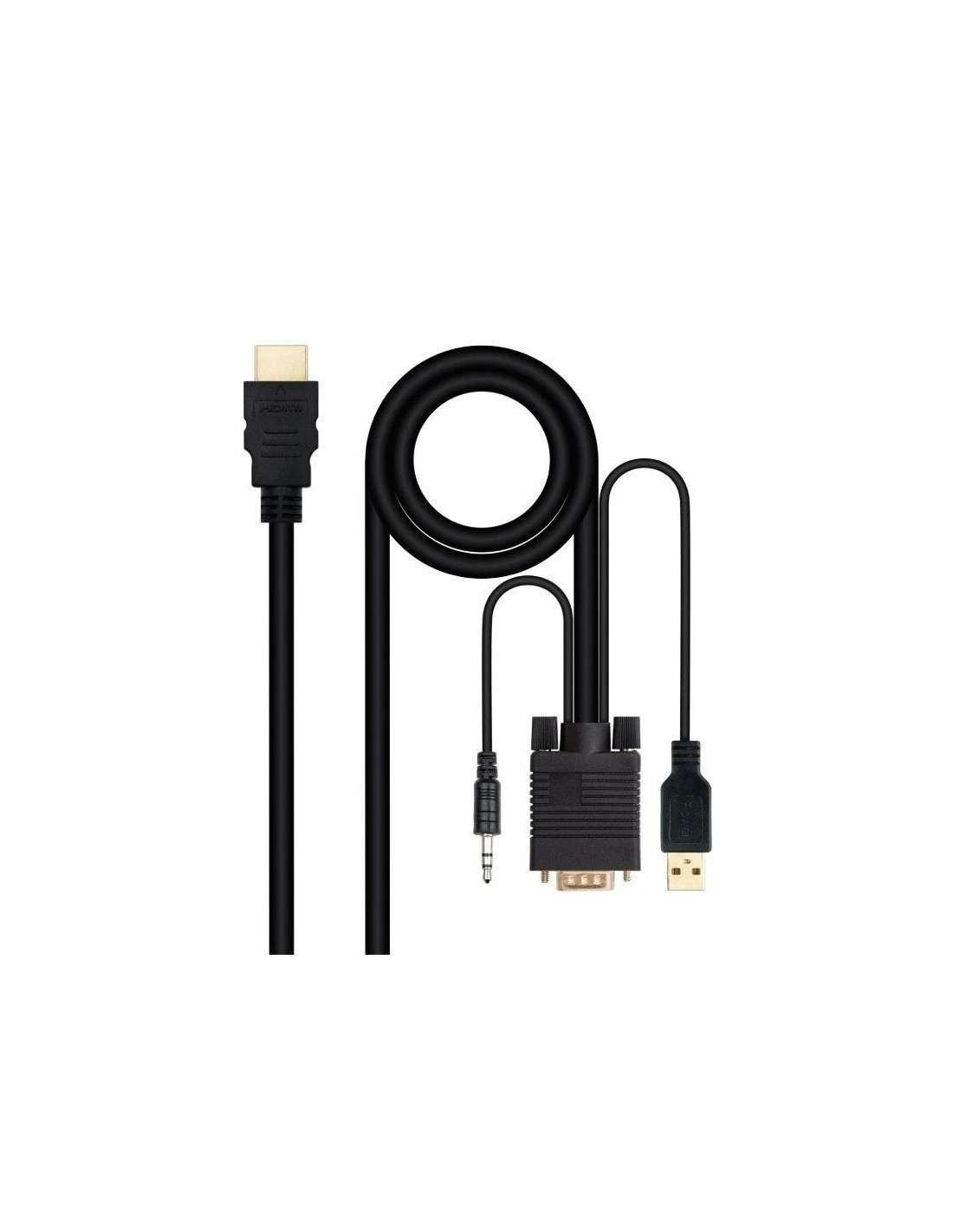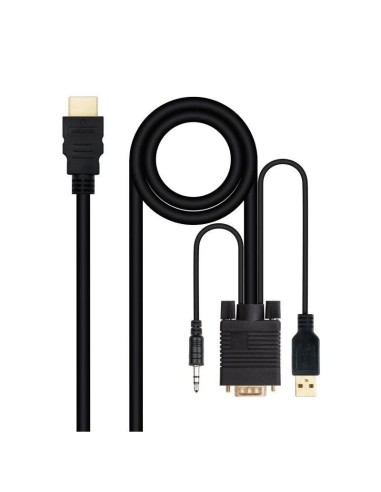 Cable Conversor Nanocable 10.15.4350/ HDMI Macho - VGA Hembra - Jack 3.5 Macho - USB Macho/ 1.8m/ Negro.