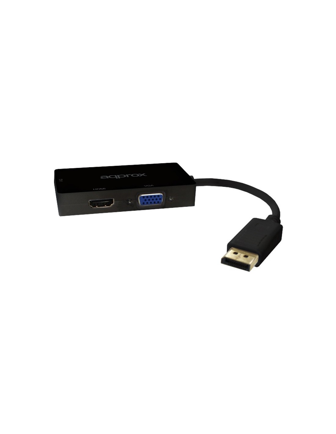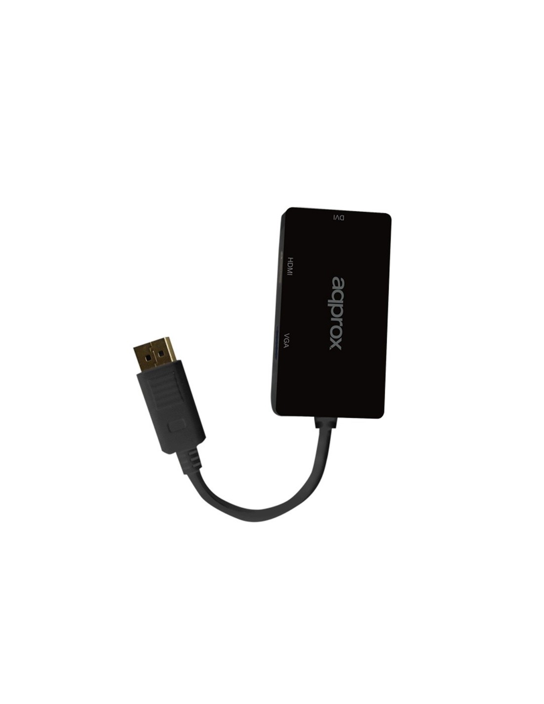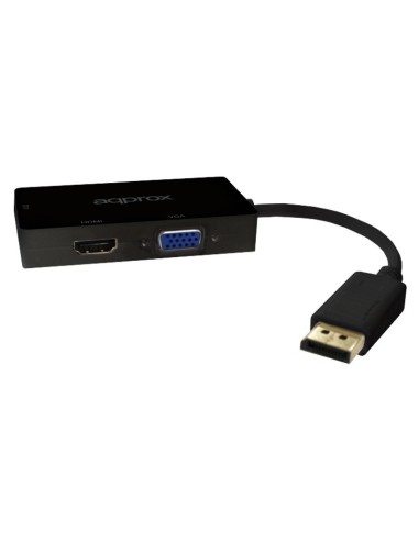 ADAPTADOR DISPLAYPORT A HDMI -VGA - DVI APPROX, Conector 1: Display Port, Conector 2: HDMI, DVI, VGA, Formato de vídeo soportado: 1080p,2160p, Resolución máxima (HDMI): 4096 x 2160 Pixeles, Resolución máxima (DVI): 4096 x 2160 Pixeles