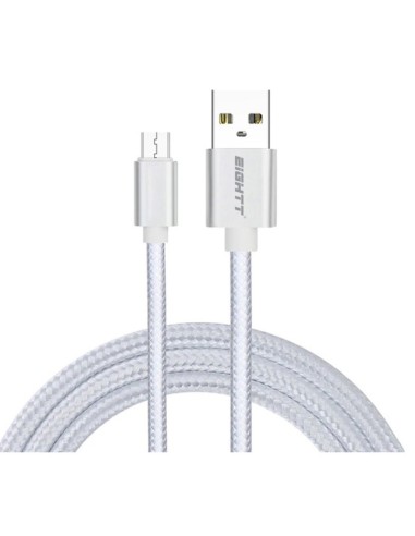CABLE USB 2.0 1 M A MICRO USB CARGA TRENZADO PLATA PN: ECM-1S EAN: 8425402170885