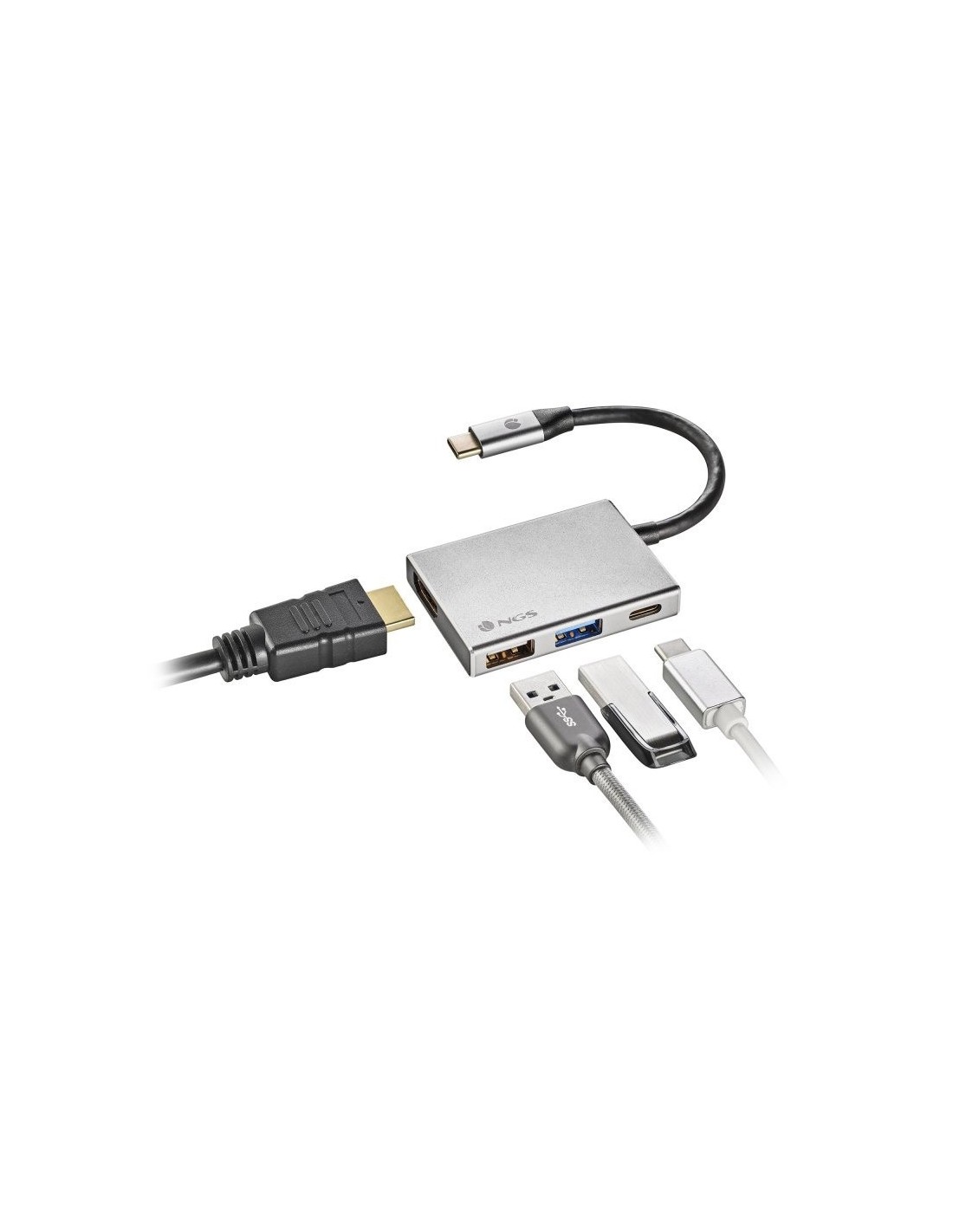 Adaptador multipuerto NGS WONDER DOCK 4 USB-C ultraligero de aluminio 4 en 1 que multiplica el número de puertos del ordenador portátil o PC. Conecta una pantalla, dispositivos de almacenamiento, impresoras y otros mientras cargas tu MacBook Pro, MacBook Air, Chromebook u otro portátil con USB-C.