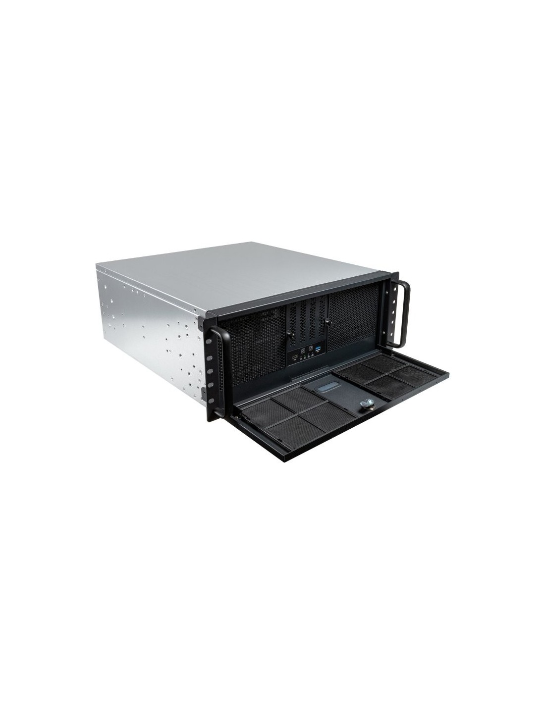Presentamos la Caja Rack 4U 19" UK4339V de UNYKA PRO. Un chasis profesional para el montaje de CPUs en armarios rack de 19". Una carcasa especialmente diseñada para la instalación de equipos informáticos de uso intensivo como servidores, PC industriales, sistemas de almacenamiento, Data Center, laboratorios, ingeniería, pequeños negocios, Pymes, etc. Dispone de un amplio espacio interno compatible con sistemas de refrigeración líquida de 360 mm (se incluye el soporte), que facilita la circulación del aire por el interior de la caja. Además, incluye cuatro patas para poder colocarlo en posición vertical. Está fabricada en acero de alta resistencia e incorpora un cierre con llave, en su puerta frontal, para mayor seguridad.