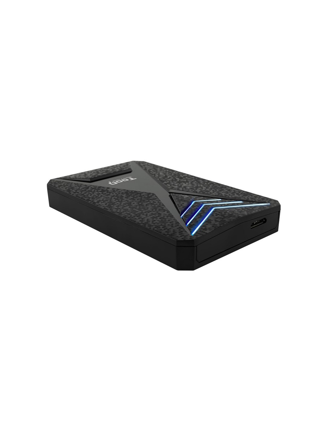 Caja externa gaming para discos duros 2.5” SATA USB 3.0/3.1 Gen 1 LEDs azules, TQE-2550BL, Conexión USB 3.0/3.1 Gen 1– velocidad de transferencia de hasta 5.0 Gbps, Compatible con discos duros de 2.5” SATA I/II/III de hasta 9,5 mm de alto