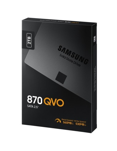 Samsung 870 QVO SSD 2TB SATA3, 2.5", Velocidad de lectura: 560 MB/s, Velocidad de escritura: 530 MB/s. PRODUCTO SUJETO A CANON DE 3,00€ QUE SE APLICARA EN FACTURA.