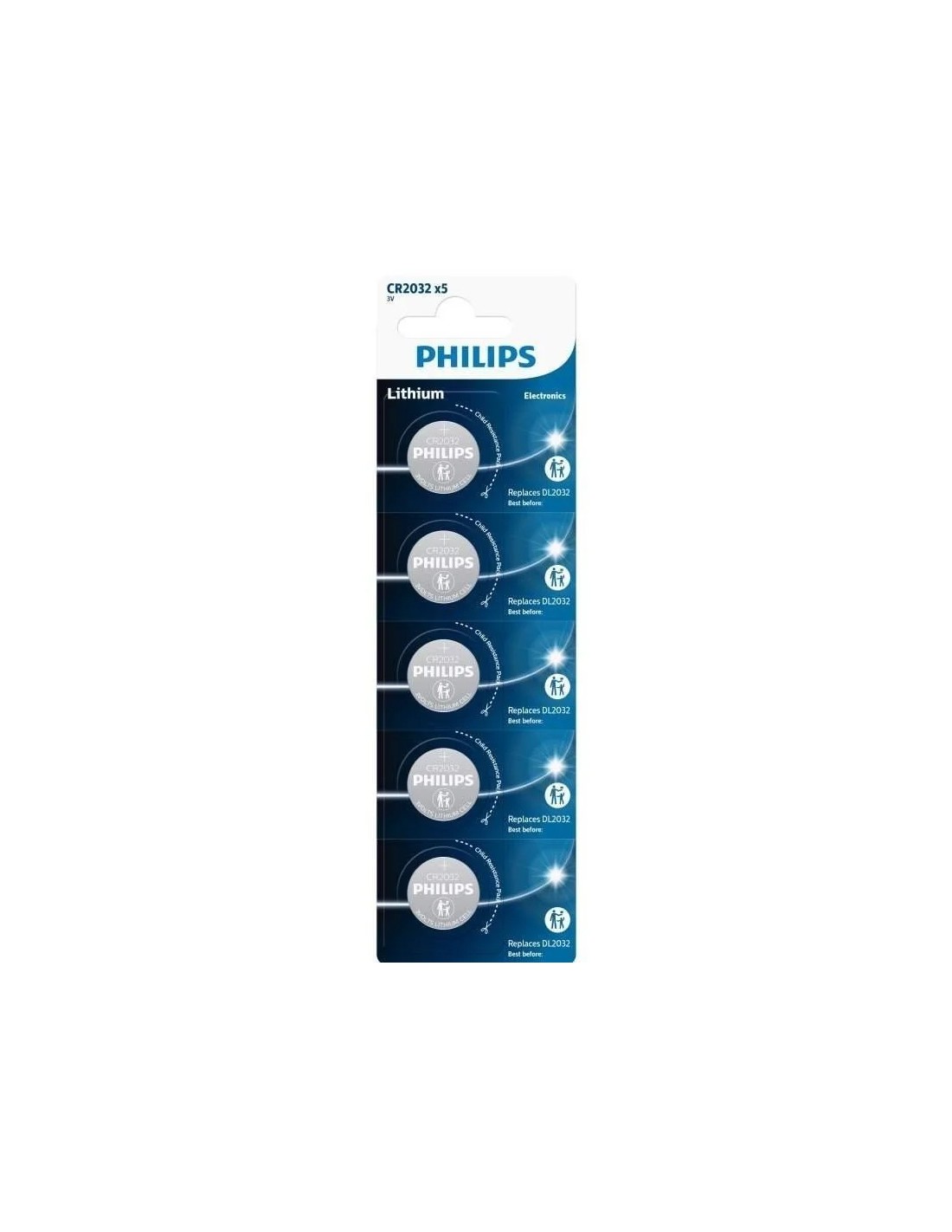 Pack de 5 Pilas de Botón Philips CR2032P5/01B Lithium/ 3V