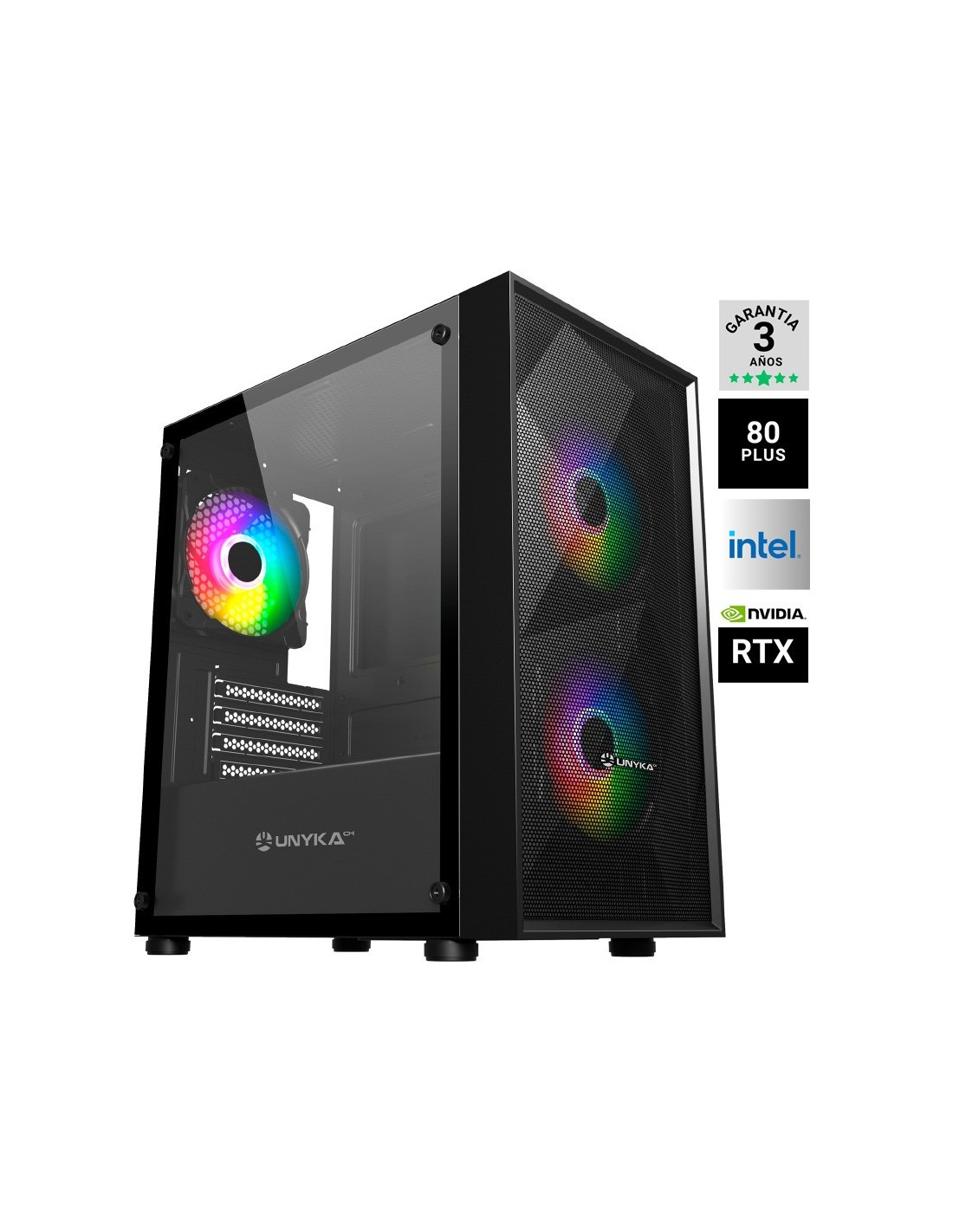 Procesador: Intel Core S-1700 I7-14700F 2.1GHZ, Chipset: Intel H610, Memoria: DDR4 16GB 3200MHZ, Disco duro: SSD M.2 500 GB NVME, Vga: RTX 3050 6GB GDDR6 OC EDITION NEGRA, Fuente 650W/54A 80 PLUS BRONZE NEGRO, x3 Ventiladores ARGB, Freedos, Caja GAMING MIR B200 NEGRA. PRODUCTO SUJETO A CANON DE 5,33€ QUE SE APLICARA EN FACTURA.