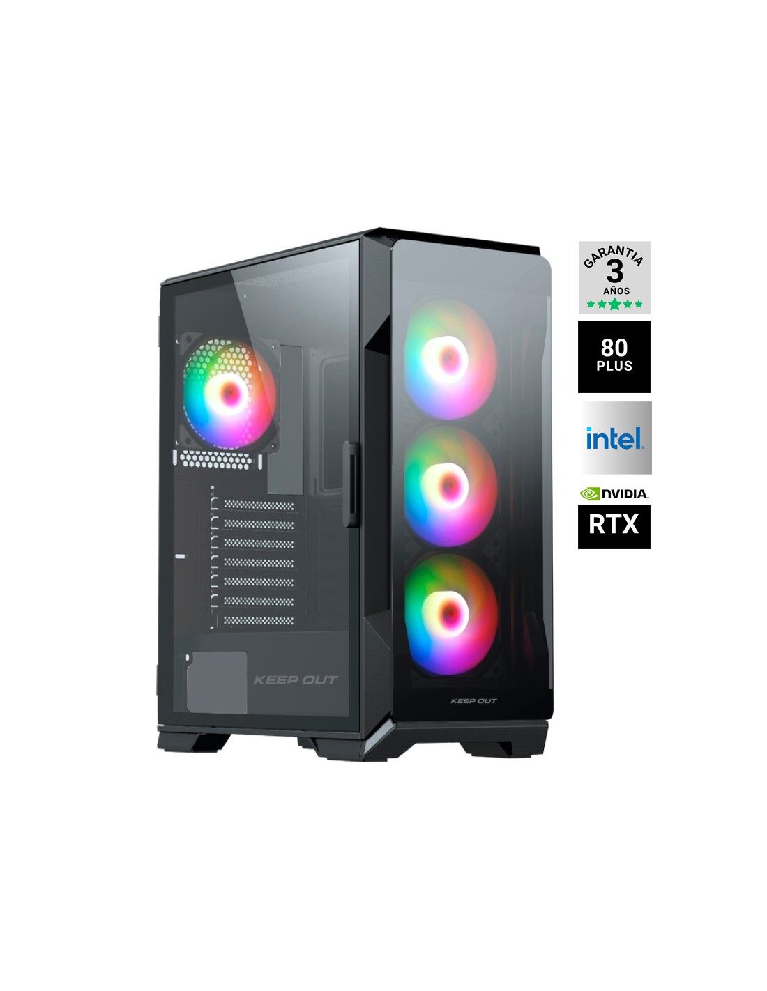 Procesador: Intel Core S-1700 I9-14900F 2.1 GHZ, Chipset: Intel B760, Memoria: DDR5 32GB 5600MHZ, Disco duro: SSD M.2 1TB NVME, Vga: RTX 5060TI 16GB GDDR7 OC EDITION PRIME GRAPHICS Negro, Fuente 750W/62.5A 80 PLUS BRONZE NEGRA, x4 VENTILADORES ARGB, Freedos, Caja GAMING KEEP OUT XC-901 Negra. PRODUCTO SUJETO A CANON DE 5,33€ QUE SE APLICARA EN FACTURA.