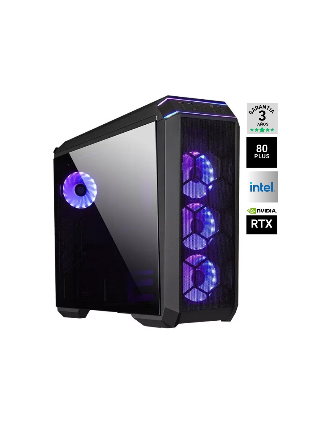 - Extras: x4 Ventiladores ARGB, KIT REFRIGERACION LIQUIDA AQUA STORM 240 ARGB Negro