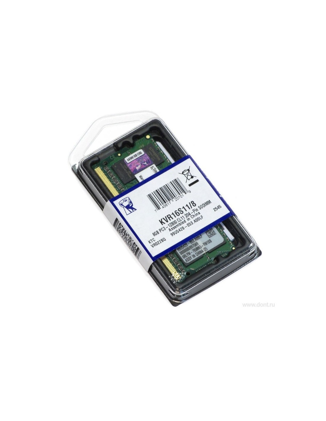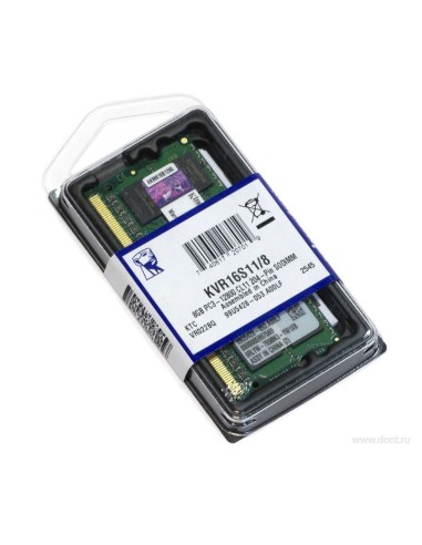 Tecnología: DDR3L 8GB-Factor de forma: SoDIMM-Pins: 204-Voltaje: 1.35v-Corrección de errores: NON ECC-Velocidad: 1600Mhz -P/N: KVR16LS11/8