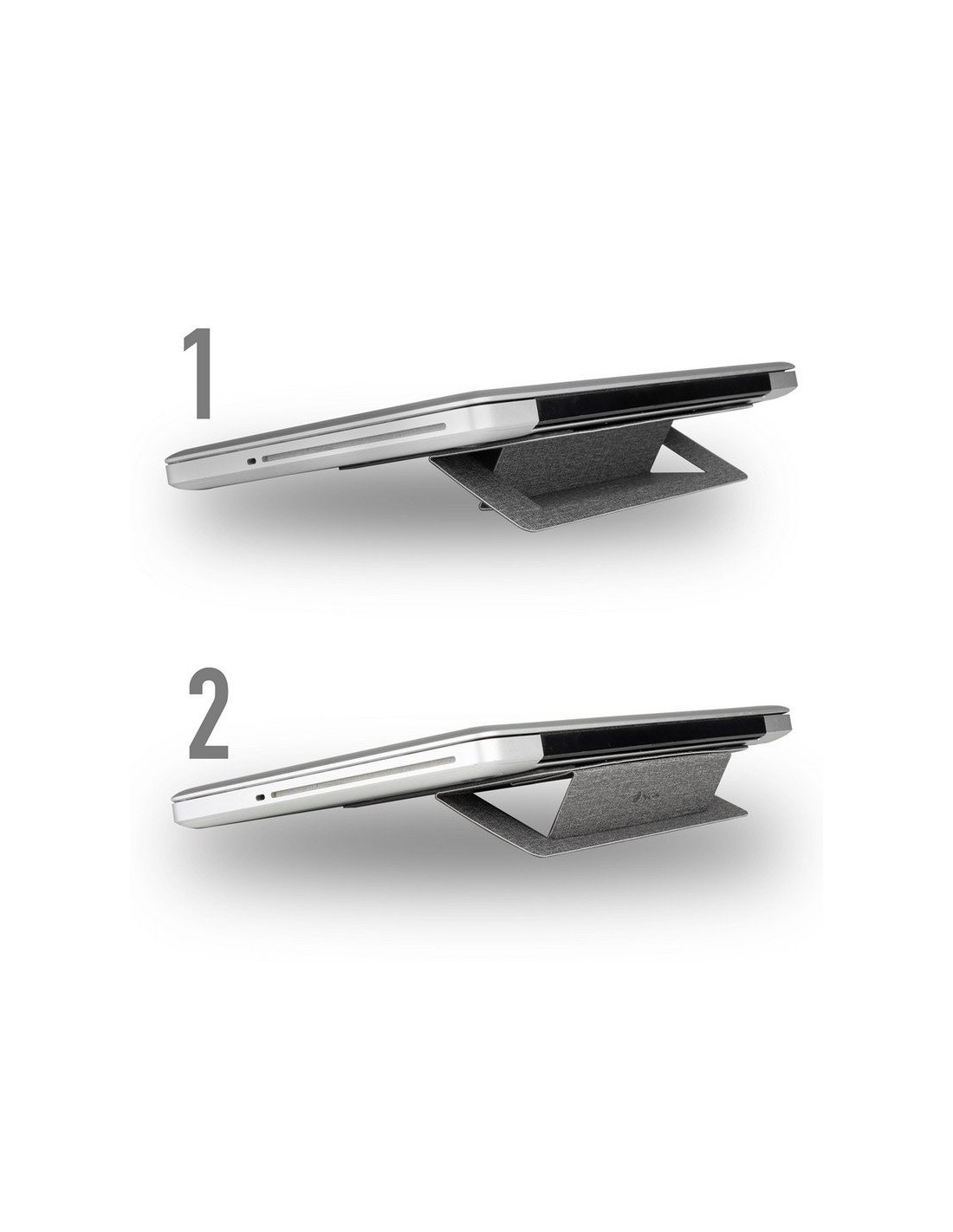 NGS Lift Stand es un soporte elevador ultrafino plegable y antideslizante para ordenadores portátiles hasta 15 pulgadas. Destaca por su fácil y rápida instalación, gracias a su cinta adhesiva antideslizante el soporte se fija a la parte trasera del dispositivo asegurando un perfecto agarre y evitando que se desplace.