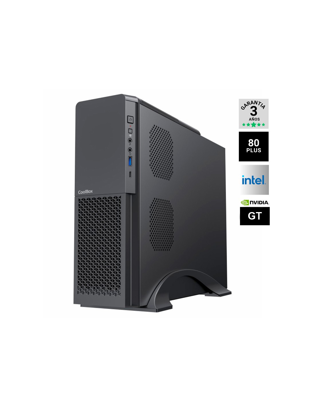 Procesador: Intel Core S-1700 I5-12400F 2.5GHz, Memoria: DDR4 16GB 3200MHZ, Disco duro: SSD M.2 1TB NVME, Vga: NVIDIA GT710 2GB GDDR5, Fuente 300W 80% PLUS, Freedos, Caja SFF MATX COOLBOX T313 SLIM Negra. PRODUCTO SUJETO A CANON DE 5,33€ QUE SE APLICARA EN FACTURA.