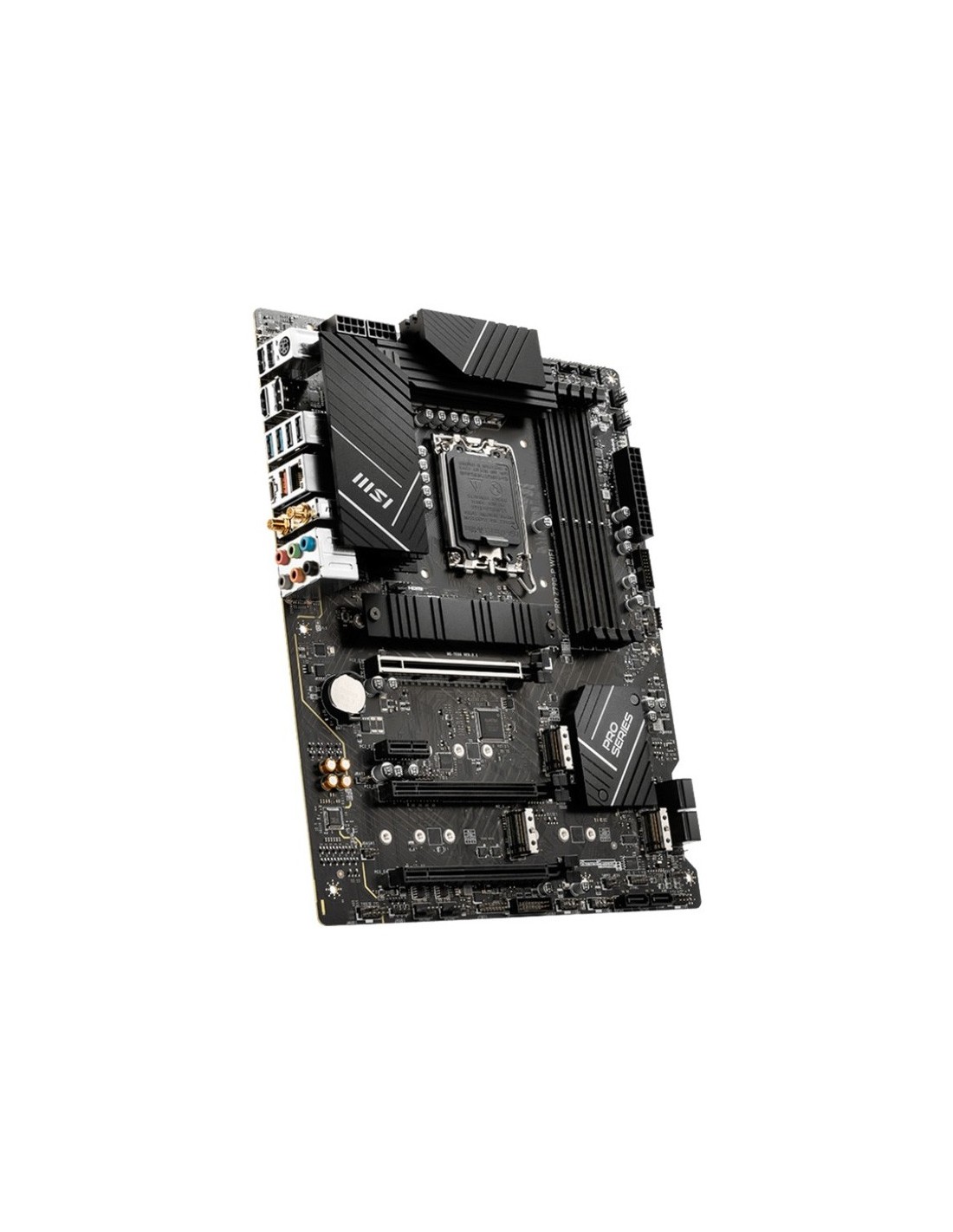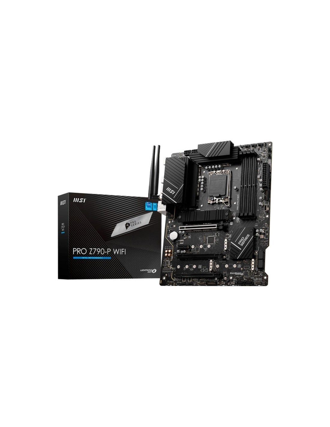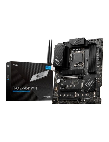 MSI PRO Z790-P WIFI. Fabricante de procesador: Intel, Socket de procesador: LGA 1700, Procesador compatible: Intel® Celeron®, Intel® Pentium® Gold. tipos de memoria compatibles: DDR5-SDRAM, Memoria interna máxima: 128 GB, Velocidades de reloj de memoria soportadas: 4800,5000,5200,5400,5800,6000,6400,6600,6800,7000 MHz. Interfaces de disco de almacenamiento soportados: M.2, PCI Express, Tipos de unidades de almacenamiento admitidas: HDD & SSD, Capacidad de almacenamiento interno: 10 GB. Tipo de interfaz ethernet: 2.5 Gigabit Ethernet, Estándar Wi-Fi: Wi-Fi 6 (802.11ax), Wi-Fi estándares: 802.11a, 802.11b, 802.11g, Wi-Fi 4 (802.11n), Wi-Fi 6 (802.11ax). Componente para: PC, Factor de forma: ATX, Familia del chipset: Intel