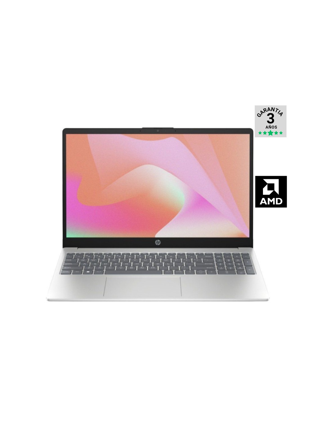 Este portátil HP de 15,6 pulgadas cuenta con muchas características orientadas a la productividad y a velar por tu cartera y por el planeta. Este potente portátil está construido con materiales reciclados y cuenta con un procesador AMD, mucho espacio de almacenamiento y gráficos fascinantes. Además, su proporción pantalla-cuerpo del 85 % y microbordes en 3 lados ofrecen espacio más que sufiAfronta la jornada con un procesador AMD, una batería de larga duración, mucho espacio de almacenamiento y conexiones inalámbricas rápidas.ciente para ver y hacer más. Con la cámara HP True Vision y los micrófonos de reducción del ruido de fondo, podrán verte y oírte de forma clara y segura. Se ha diseñado cuidadosamente, contiene plásticos reciclados y cuenta con la certificación EPEAT® Gold y la certificación ENERGY STAR®.