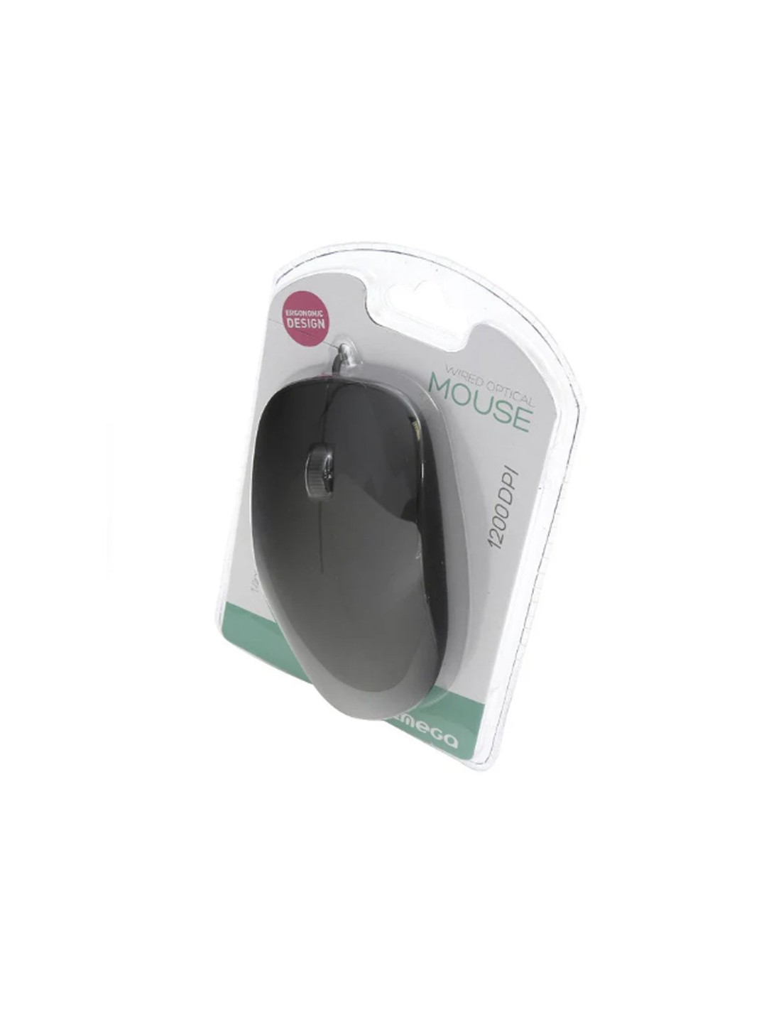 Ratón óptico de Omega, 1200DPI, reduce los movimientos de la muñeca, necesita pocos centímetros para generar movimientos exactos, cable de 1.4m, conexión USB.
