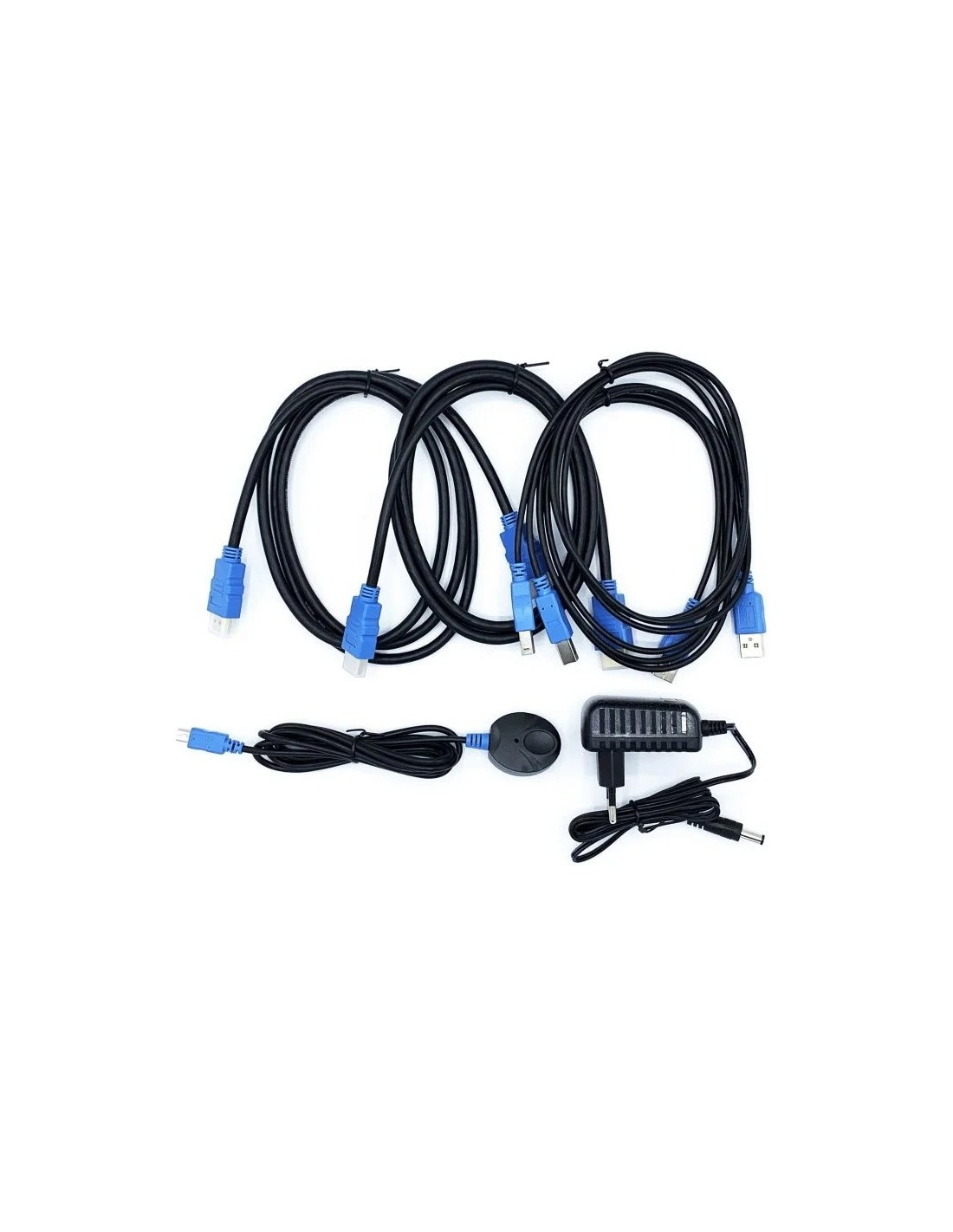 - Requisitos mínimos de sistema: Monitor con conexión HDMI, teclado y ratón USB, 2 ordenadores (PC u ordenador portátil) con puerto USB 1.1 o 2.0 y puerto HDMI