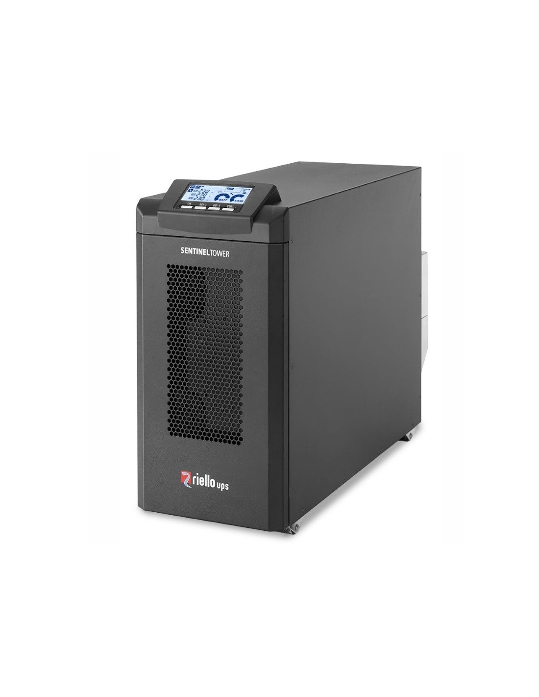 Riello Sentinel Tower. Topología UPS: Doble conversión (en línea), Capacidad de potencia de salida (VA): 5 kVA, Potencia de salida: 5000 W. Tipo de salida AC: IEC 320, Cantidad de salidas AC: 2 salidas AC, Tipo de serie de interfaz: RS-232. Tecnología de batería: Sealed Lead Acid (VRLA), Tiempo de recarga de la batería: 6 h. Factor de forma: Torre, Color del producto: Aluminio, Negro, Tipo de enfriamiento: Activo. Ancho: 250 mm, Profundidad: 698 mm, Altura: 500 mm
