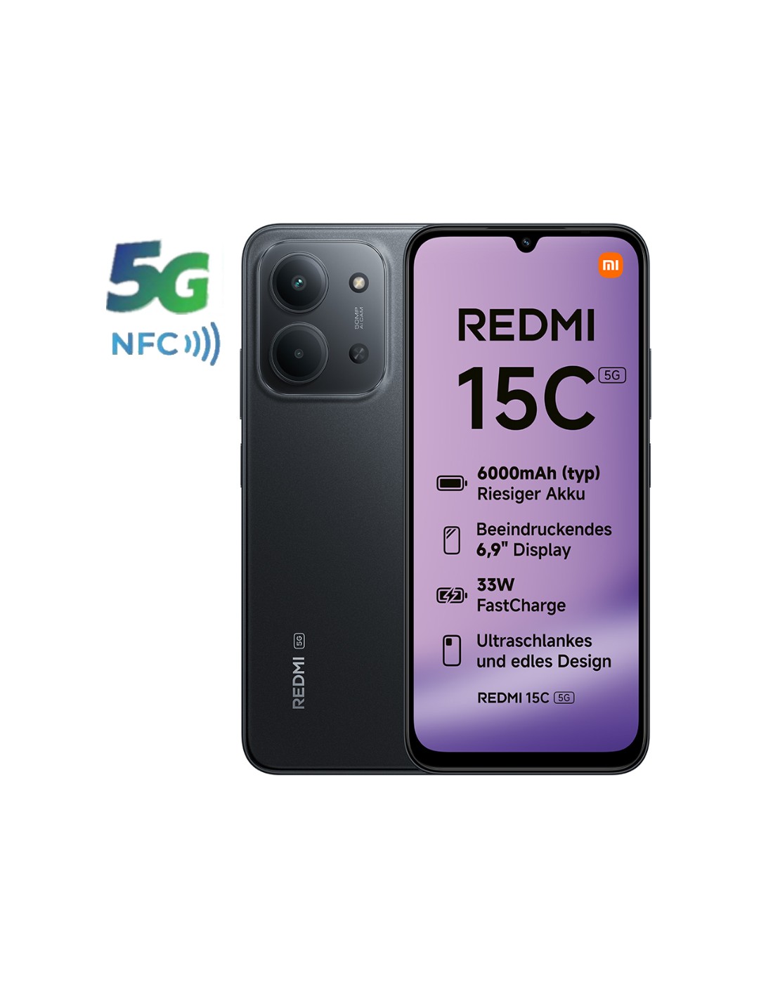 SMARTPHONE 6.9" XIAOMI REDMI 15C 4GB 128GB NFC 5G NEGRO PN: REDMI 15C 5G 4-1 EAN: 6932554458607