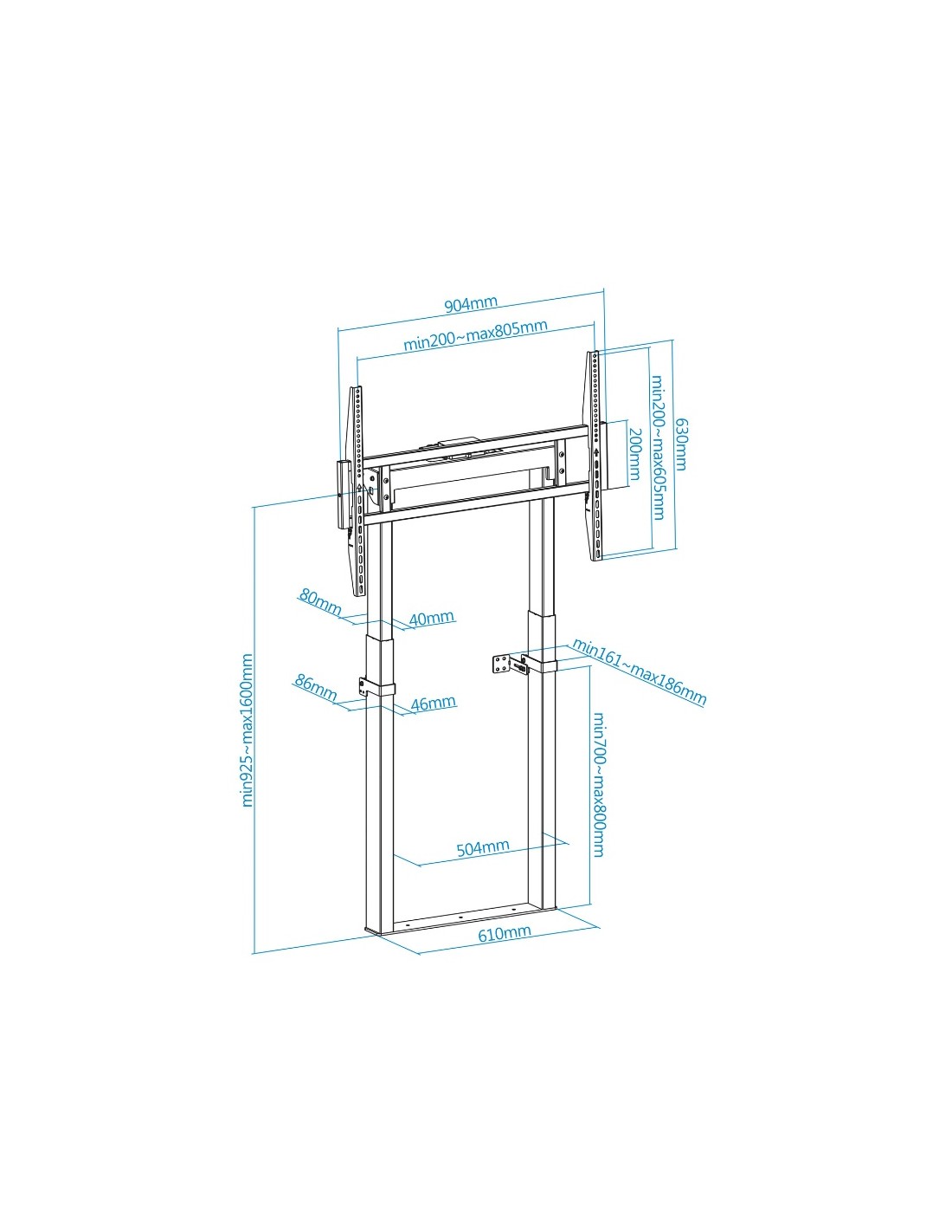 - Rango de ajuste de altura del soporte: 925-1600 mm