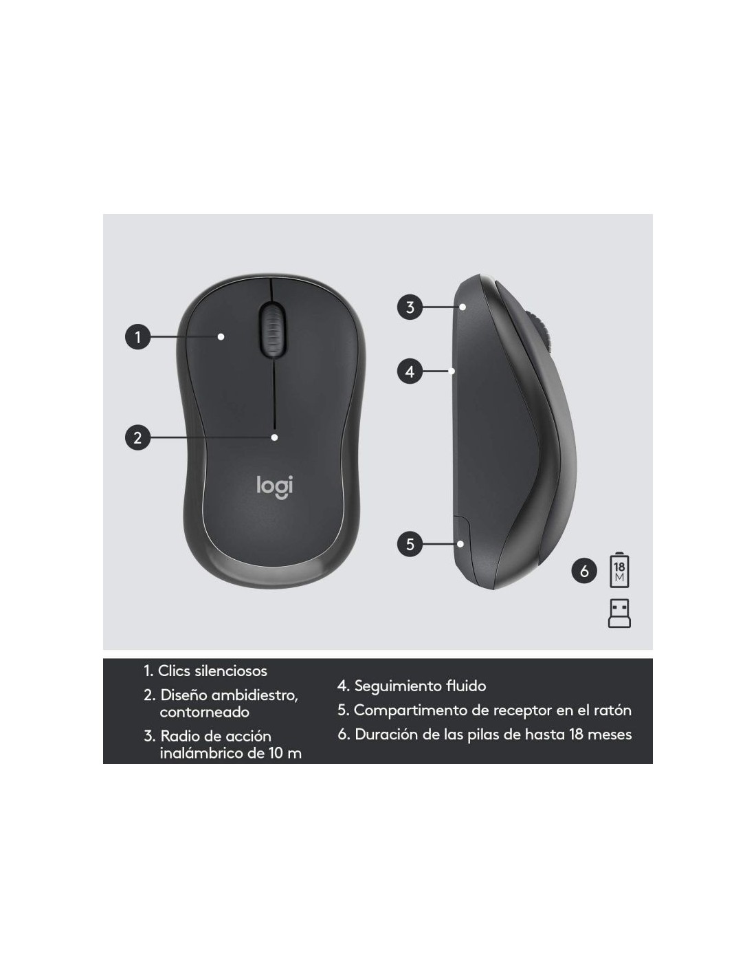 - Dimensiones del ratón (Ancho x Profundidad x Altura): 60 x 99 x 37 mm