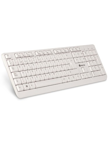 TECLADO BLANCO CON 12 TECLAS MULTIMEDIA DE CABLE NGS Spike es un práctico teclado con conexión USB que cuenta con 12 teclas multimedia que hacen más fácil y rápido el acceso a las distintas aplicaciones del ordenador y sus habituales funciones. Su original acabado en color blanco, le dota de elegancia y personalidad. La pulsación de las 105 teclas de membrana es muy suave y el ruido que emiten al ser pulsadas es prácticamente imperceptible. Además, incorpora un diseño original resistente a los derrames, que ofrece un funcionamiento de mayor duración, aproximadamente de 10 millones de pulsaciones. Su capacidad de resistencia se debe a que sus teclas incluyen un tratamiento antidesgaste, evitando que se borren los caracteres y asegurando una larga vida. NGS Spike incluye soportes para regular su inclinación además de un cable de 1,4 m de gran longitud para poder conectarlo cómodamente. Por último, NGS Spike tiene incorporada la función Plug & Play con lo que la conexión a cualquier equipo se realizará de forma inmediata.