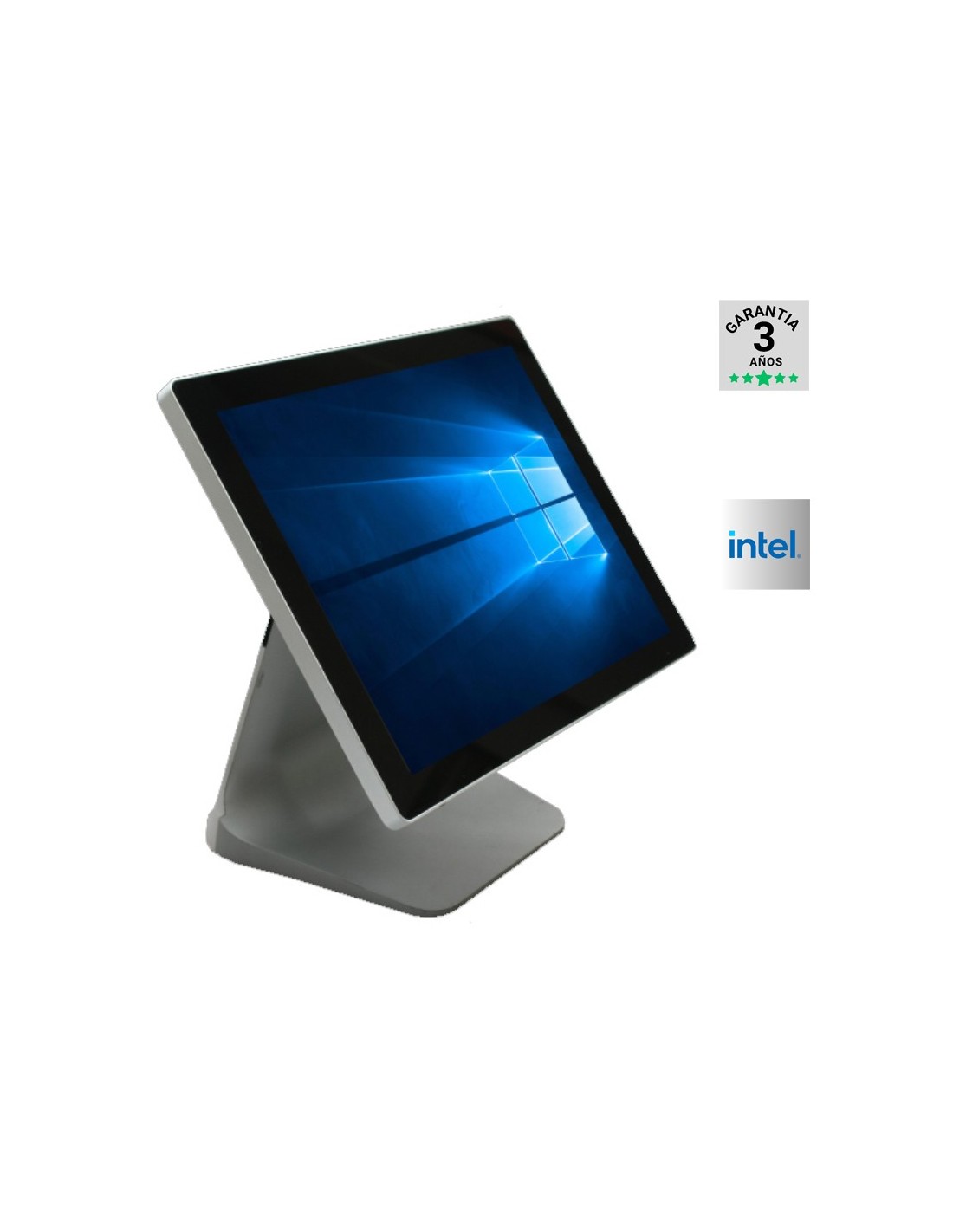 TPV con pantalla tácitl capacitiva 10 toques flat true de 15 pulgadas, J6412 1.99GHz, SSD extraíble, Wifi, plateado.