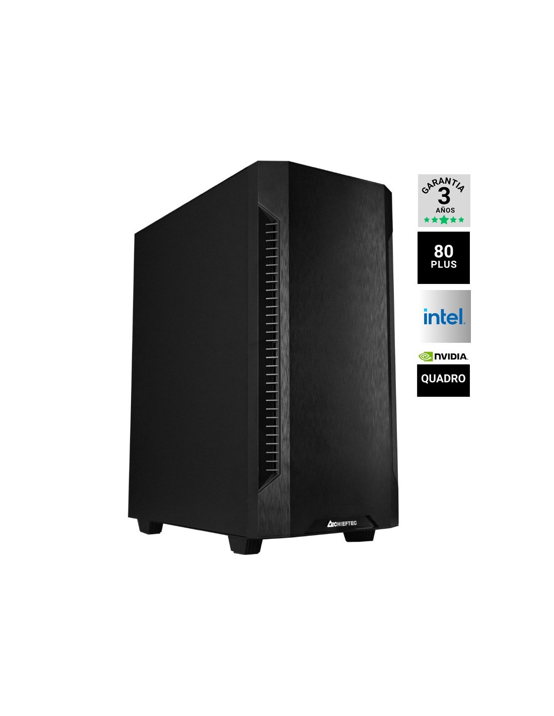 Procesador: Intel Core I9-14900F 2.1GHz, Memoria: DDR4 32B 3200MHZ, Disco duro: SSD M.2 1TB NVME, Vga: Nvidia QUADRO RTX A2000 ADA 16GB GDDR6, Fuente 750W/62.5A 80 PLUS BRONZE NEGRA, x2 Ventiladores, Freedos, Caja SEMITORRE ATX CHIEFTEC AS-01B-OP Negra. PRODUCTO SUJETO A CANON DE 5,33€ QUE SE APLICARA EN FACTURA.