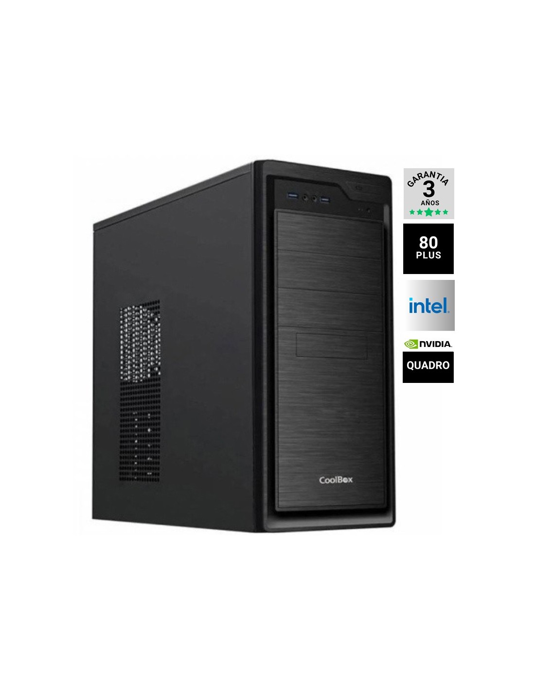 Procesador: Intel Core S-1700 I7-14700F 2.1Ghz, Memoria: DDR4 16GB 3200MHZ, Disco duro: SSD M.2 1TB NVME, Vga: NVIDIA QUADRO RTX 2000 ADA 16GB GDDR6 4 X MINI DIPLAY PORT, Fuente 750W/62.5A 80 PLUS BRONZE NEGRO, Windows 11 Pro, Caja Micro ATX UNYKA SHADOW Negra. PRODUCTO SUJETO A CANON DE 5,33€ QUE SE APLICARA EN FACTURA.